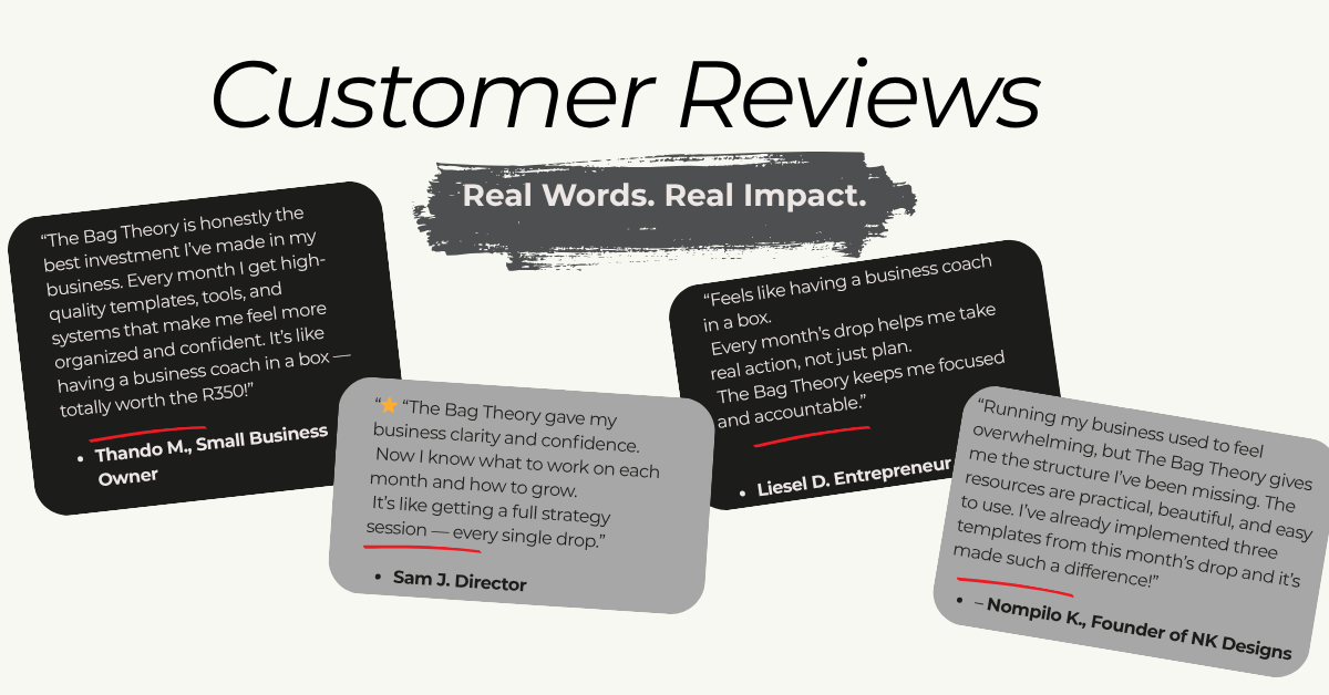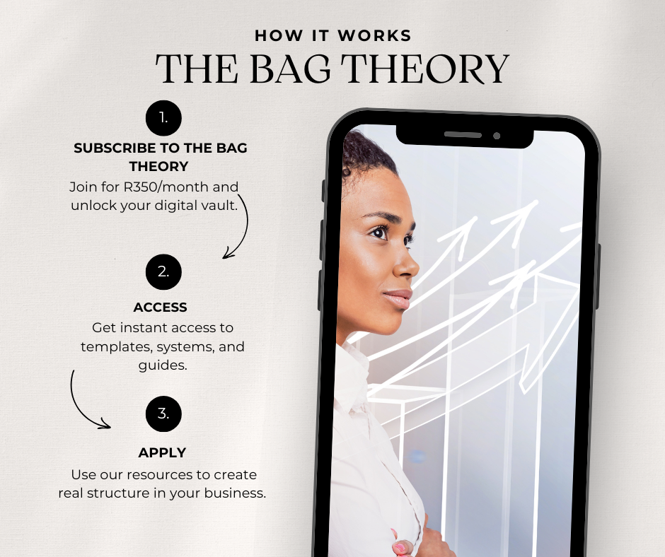 With years of hands-on experience coaching business owners and simplifying strategy, Lerato created The Bag Theory to make business growth more accessible, structured, and achievable.