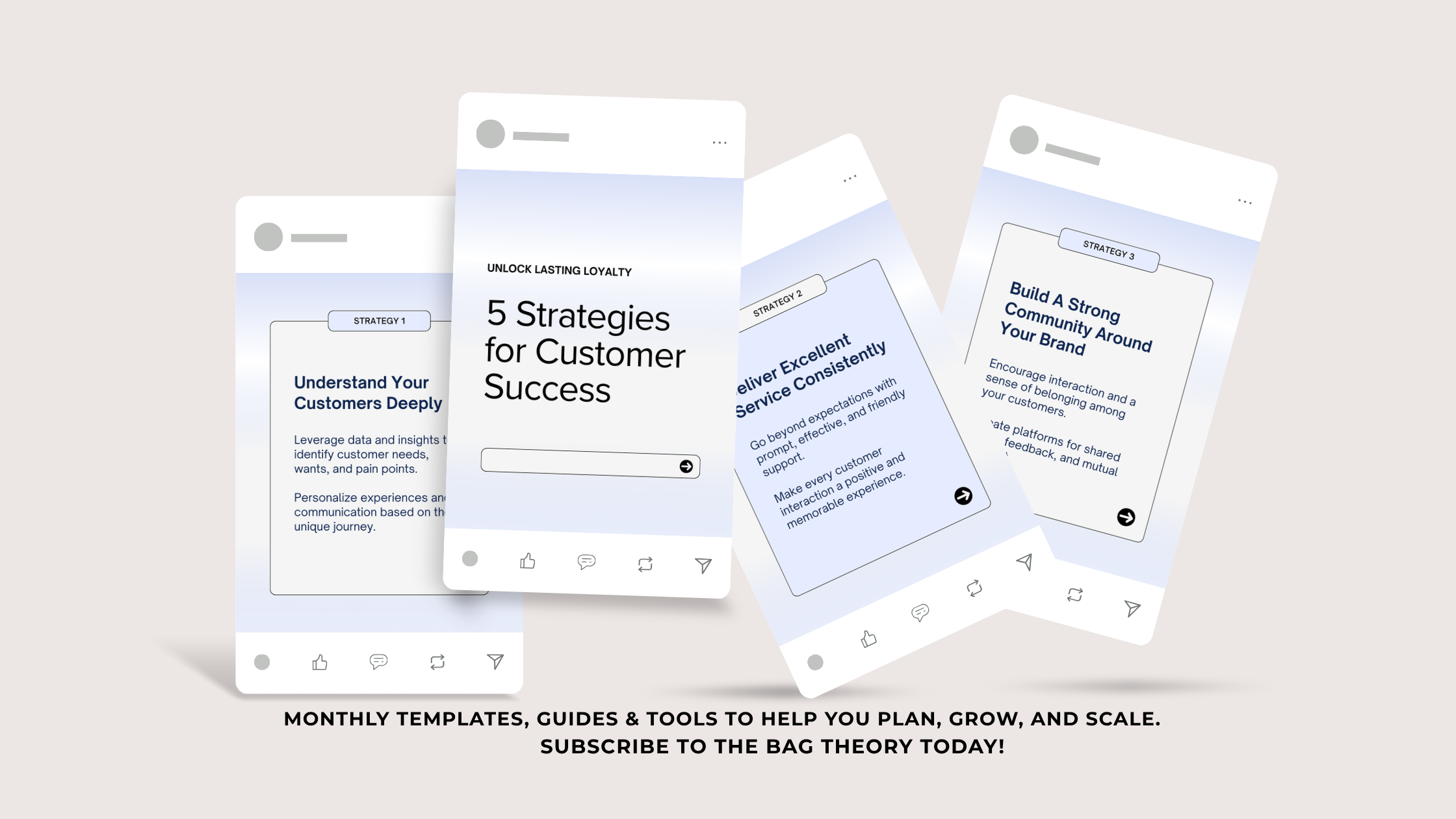 The Bag Theory is a monthly business resource subscription created by a business coach. Each month, you’ll receive 5–10 high-quality templates, guides, planners, and tools to help you grow, systemize, and scale your business — all curated to match a specific monthly theme.